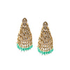Step into regal elegance with these magnificent Kundan & Emerald Beaded Layered Earrings, crafted to perfection for grand occasions. Designed in a tiered chandelier style, each layer features dazzling polki stones set in antique gold, creating a striking cascade effect. The bottom is accentuated with vibrant emerald-green beads, adding a touch of richness and movement. Ideal for weddings, festive functions, or traditional ensembles, these earrings embody luxury and timeless charm.