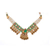This Heritage Temple Pearl Bandh Choker is a celebration of timeless artistry. Featuring layers of delicate pearls, vibrant green enamel work, and intricate kundan with red accents, it is finished with bold golden beads and detailed danglers. A true statement piece, this choker exudes royal elegance and is perfect for weddings, bridal wear, and festive occasions.