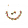 This Traditional Kundan Necklace Set is a vibrant celebration of artistry. Designed with an intricate scalloped pattern, it features sparkling kundan stones, ruby-red and emerald-green accents, and delicate bead danglers. The matching earrings complement the necklace beautifully, making this set a perfect choice for weddings, festive occasions, and cultural celebrations.