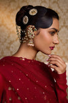Adorn your look with this Traditional Kundan Ear Cuff, intricately designed with sparkling kundan stones, vibrant red and green accents, and elegant pearl detailing. The cascading chains with tiny pearl drops enhance its grandeur, while the statement jhumka at the end adds a regal touch. Perfect for weddings, bridal wear, and festive occasions, this ear cuff is sure to make you stand out with timeless elegance.