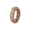Elevate your ethnic elegance with this Handcrafted Kundan Bangle, designed with a stunning fusion of traditional artistry and modern charm. Adorned with dazzling white Kundan stones and pastel pink accents, this intricate piece is set on a gold-toned base with fine detailing. Its luxurious craftsmanship makes it the perfect accessory for weddings, festive occasions, and cultural celebrations, adding a regal flair to your look.