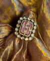 Make a bold style statement with this Traditional Kundan Cocktail Ring, designed in a striking square shape and adorned with sparkling Kundan stones surrounding a central green glass stone. The intricate detailing and antique silver finish lend it a regal charm, blending elegance with tradition. Perfect for weddings, festive occasions, and grand celebrations, this adjustable ring ensures both comfort and sophistication in every wear.
